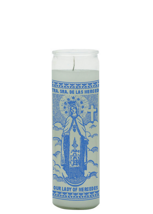 Invite peace and tender protection into your day. This white 7-day devotional candle features a serene image of Our Lady of Mercy—perfect for focused prayer, novenas, or quiet moments of gratitude. Light it to seek her intercession for guidance, strength, and calm. Place it on your altar, whisper your petition, and let your vigil glow—add to cart and begin your prayer today.