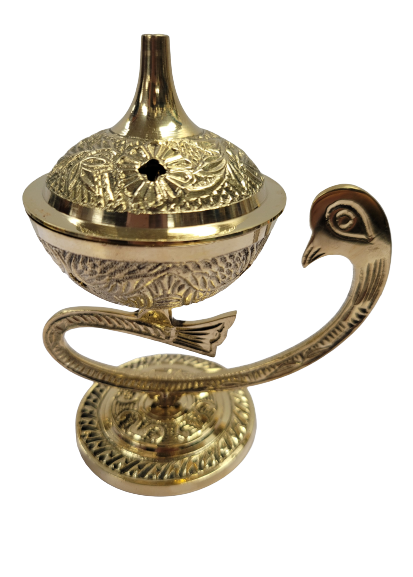 The Peacock Incense/Resin Burner is a beautiful and unique way to experience the aromas of your favorite incense or resins. This exquisite burner features a peacock's head, wings, and tail feathers in intricate detail that will bring an exotic yet comforting atmosphere to any room. The resin cup creates a deep chamber for burning your favorite fragrances without fear of smoke or flame.