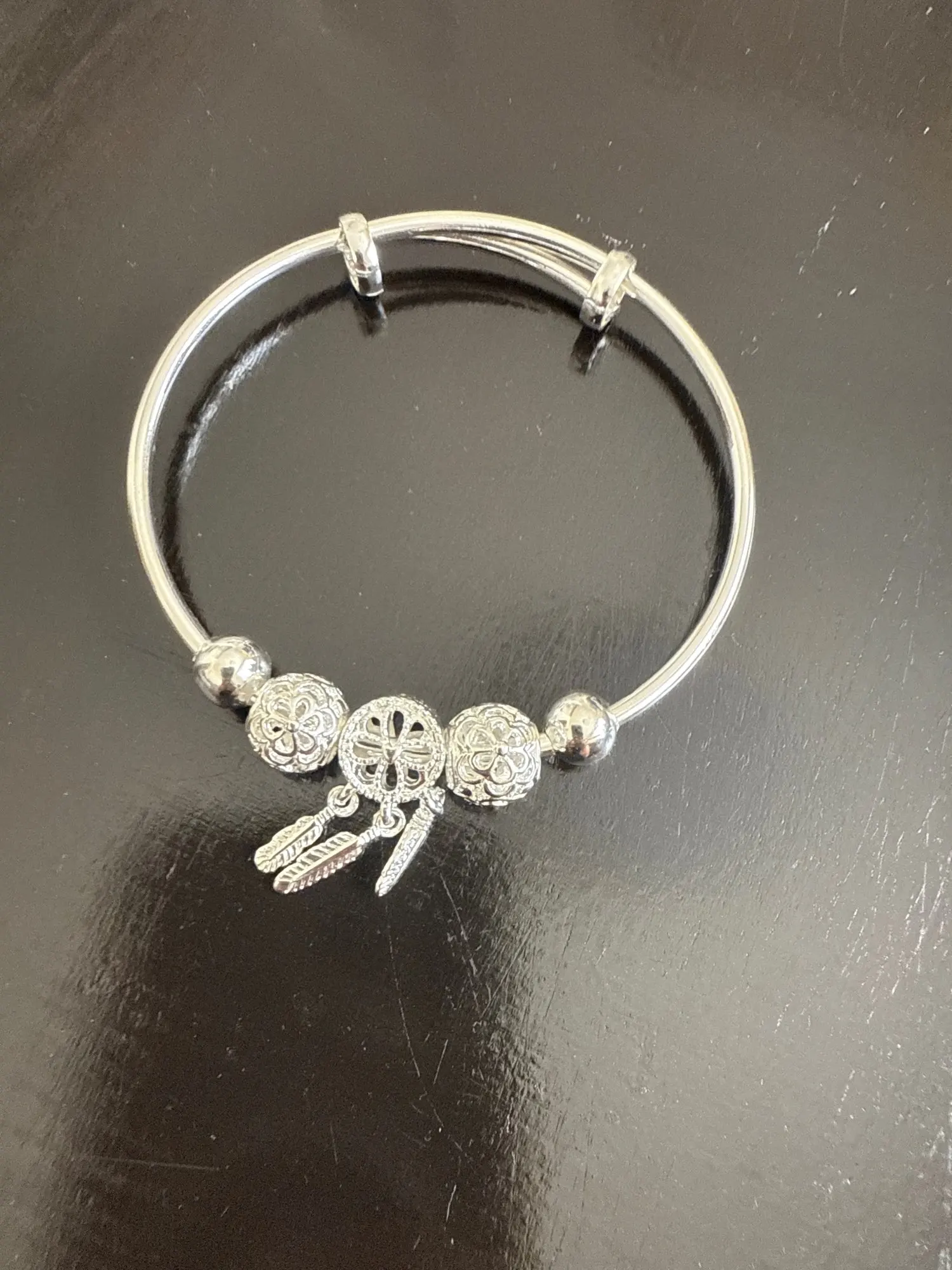 The 925 Sterling Silver Dreamcatcher Charm Adjustable Bangle is a perfect blend of elegance, symbolism, and versatility. Whether for a wedding, a romantic gift, or a personal style upgrade, this bracelet captures hearts with its timeless beauty and light luxury appeal.