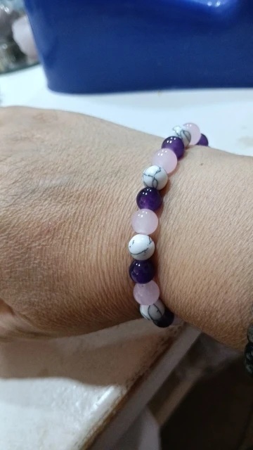 Drift into restful sleep and restore your inner balance with this elegant aura-balancing bracelet. Crafted from natural stones—White Turquoise, Amethyst, and Rose Quartz—this strand bracelet not only elevates your style but also promotes calmness, emotional healing, and harmony. Perfect for both men and women, it’s a beautiful accessory with powerful natural energy.