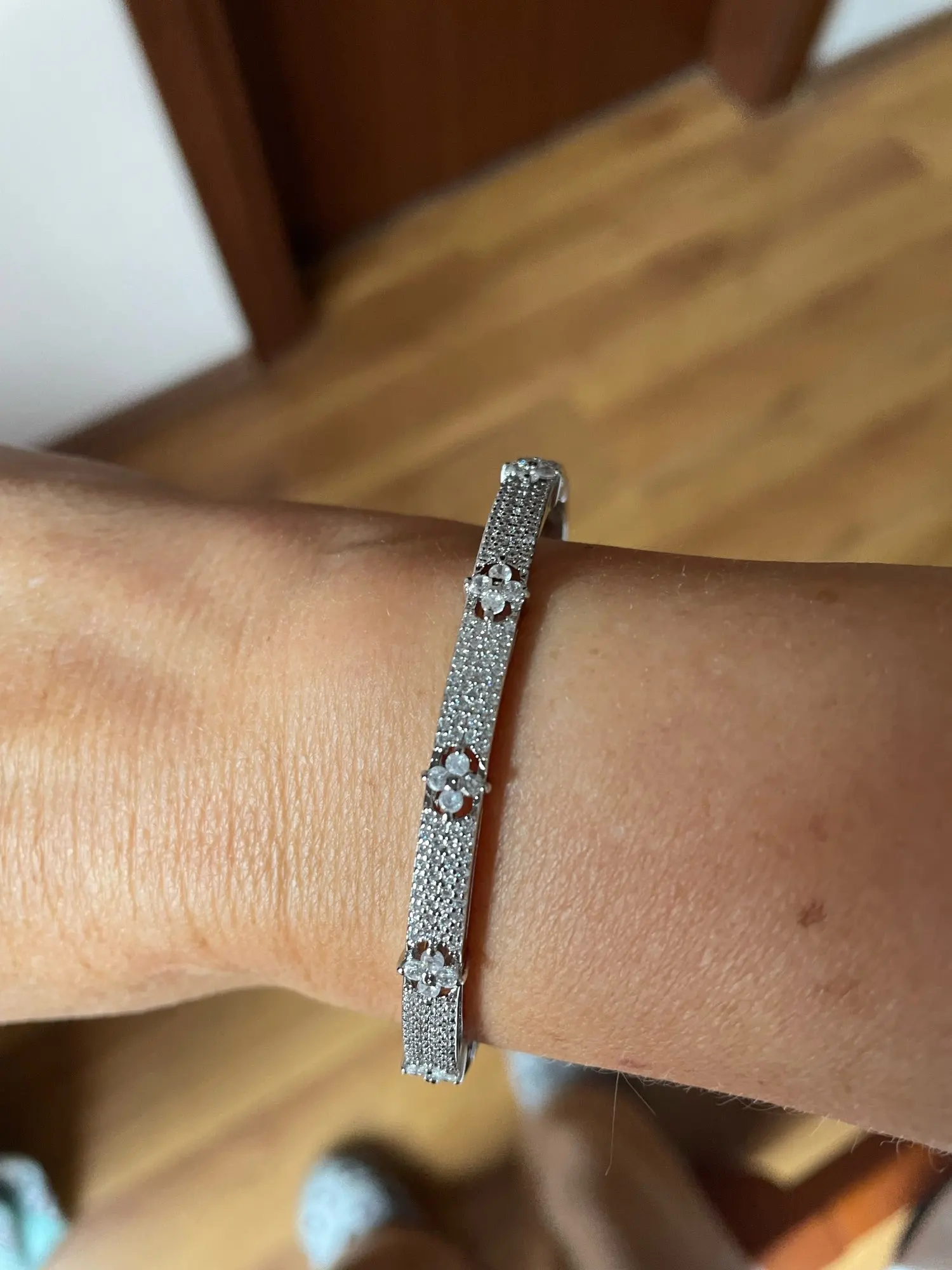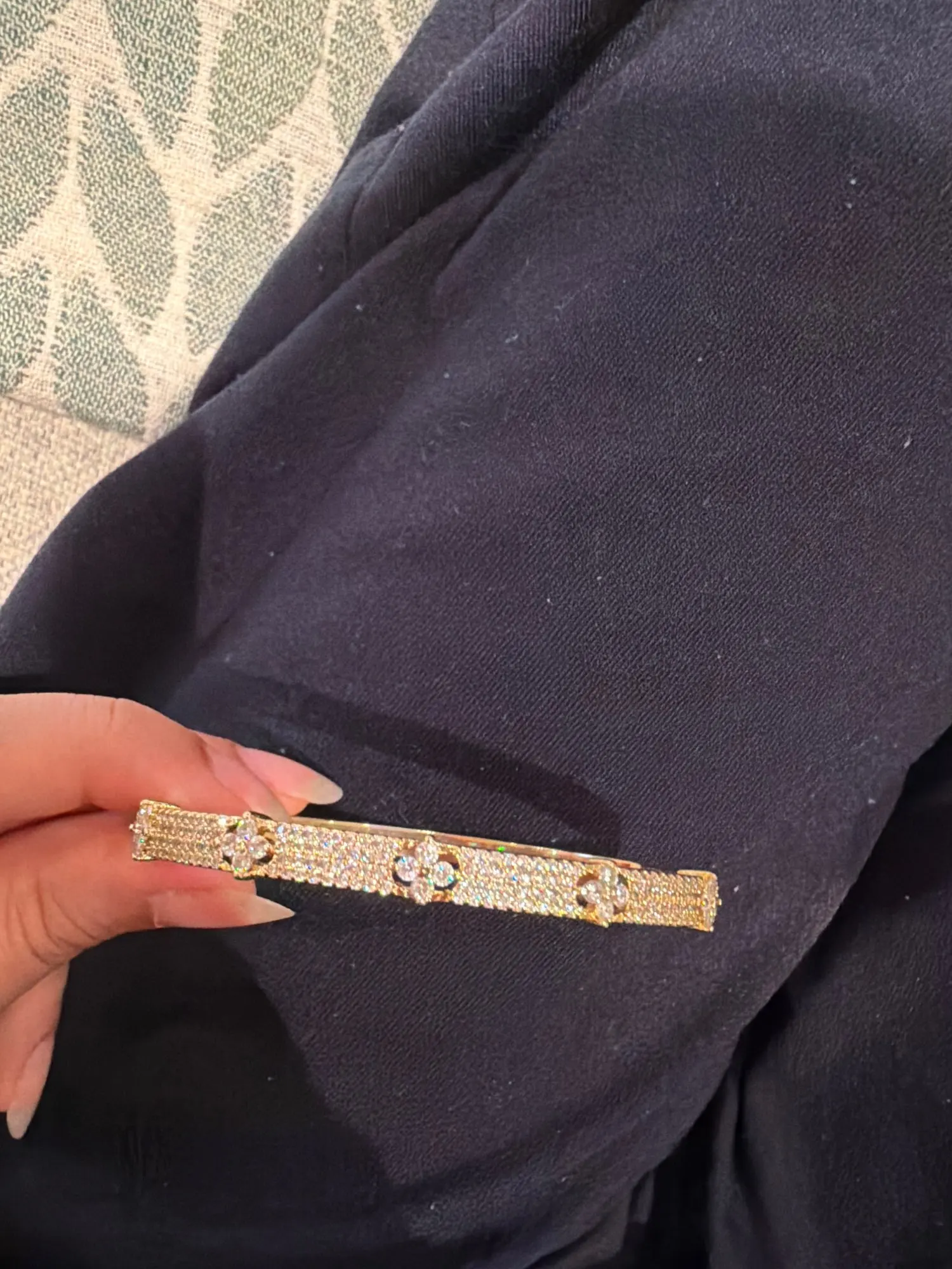 Add timeless charm to your look with this elegant four-leaf flower bracelet inlaid with sparkling zircons. Designed in a delicate French vintage style, it’s perfect for weddings, parties, or daily wear, making every outfit shine with romance and grace.
