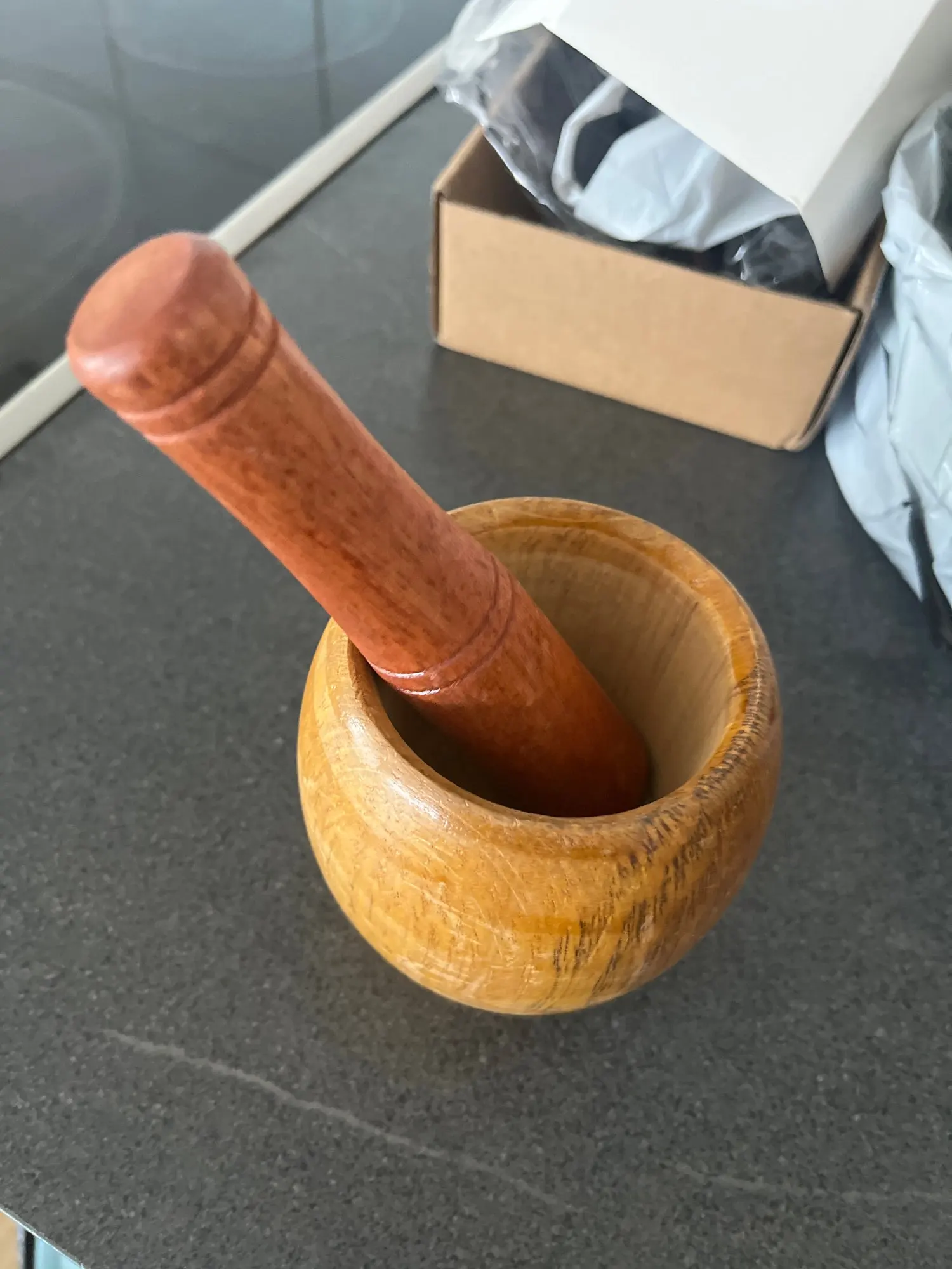 Elevate everyday cooking with a classic, hands-on grinder. This natural-wood mortar and pestle quickly crushes ginger, garlic, pepper, coffee beans, herbs—even pills—so you get fresher aroma, fuller flavor, and perfect texture every time.