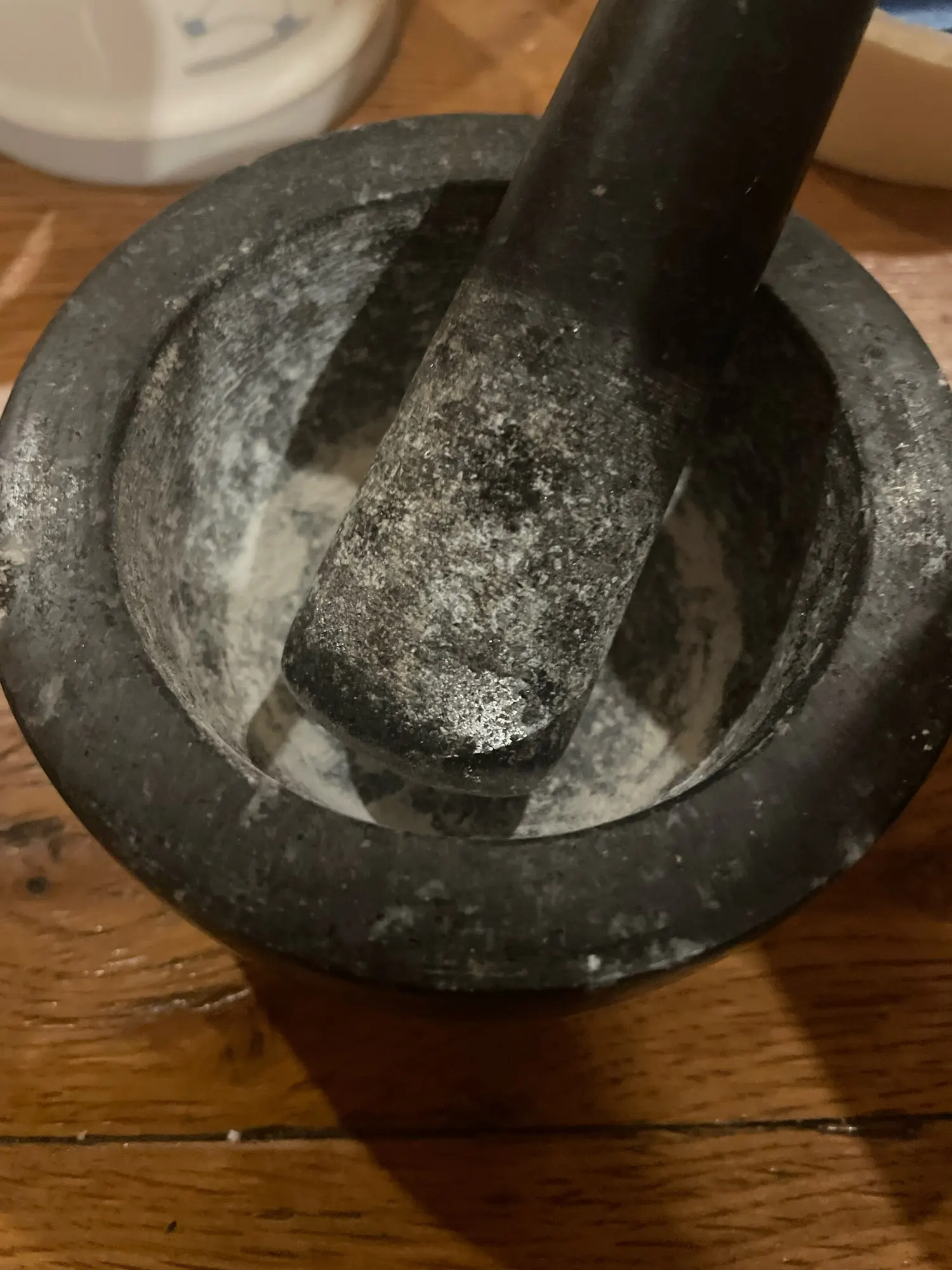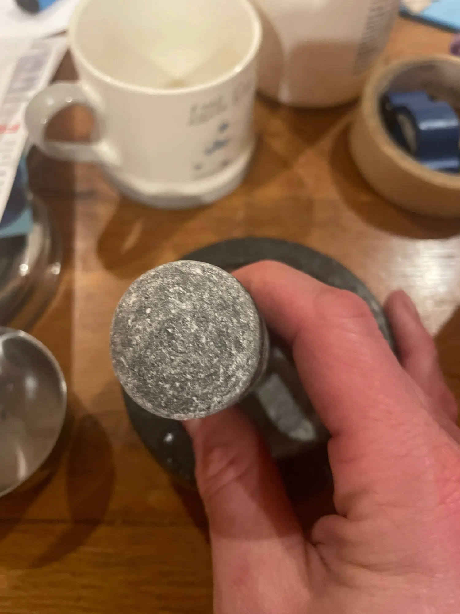 - Thick, ergonomic pestle for comfortable, controlled crushing