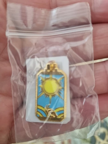 • Vivid enamel tarot designs: Sun, Star, Moon, Evil Eye, Heart