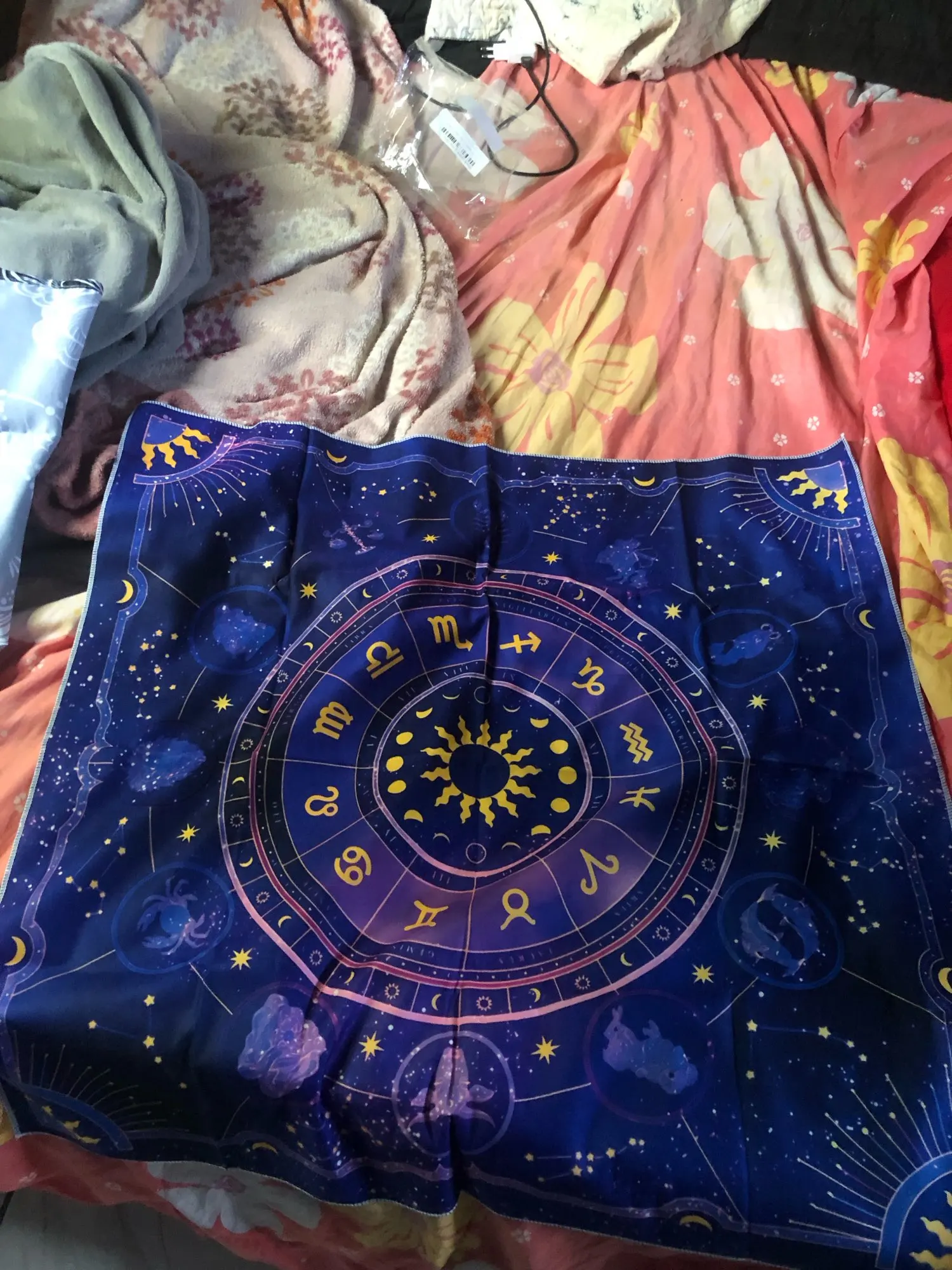 This tarot and zodiac altar cloth is a must-have for fortune-tellers, astrology lovers, and spiritual practitioners. With its unique zodiac design and versatile applications, it effortlessly enhances rituals, card readings, and home décor.