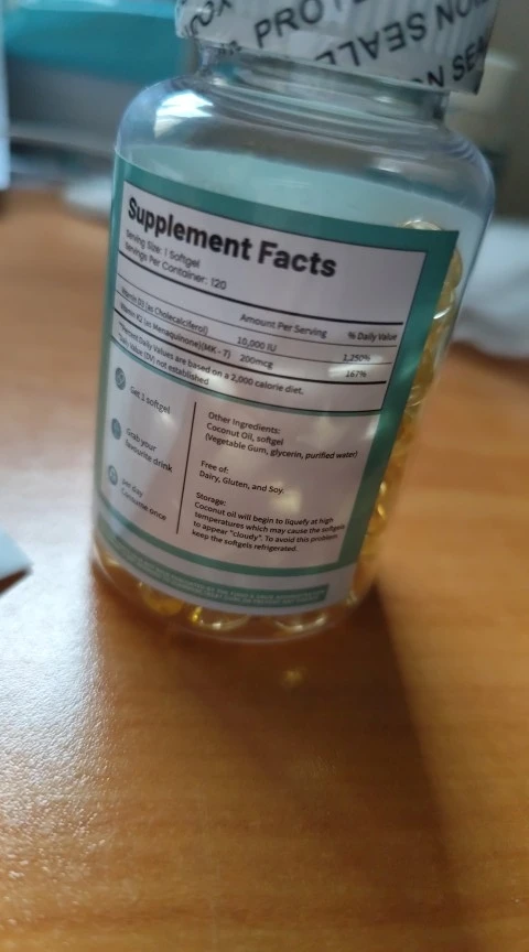 - Main Ingredients: Vitamin D3 (25 mcg / 1000 IU), Vitamin K2 (90 mcg) per capsule