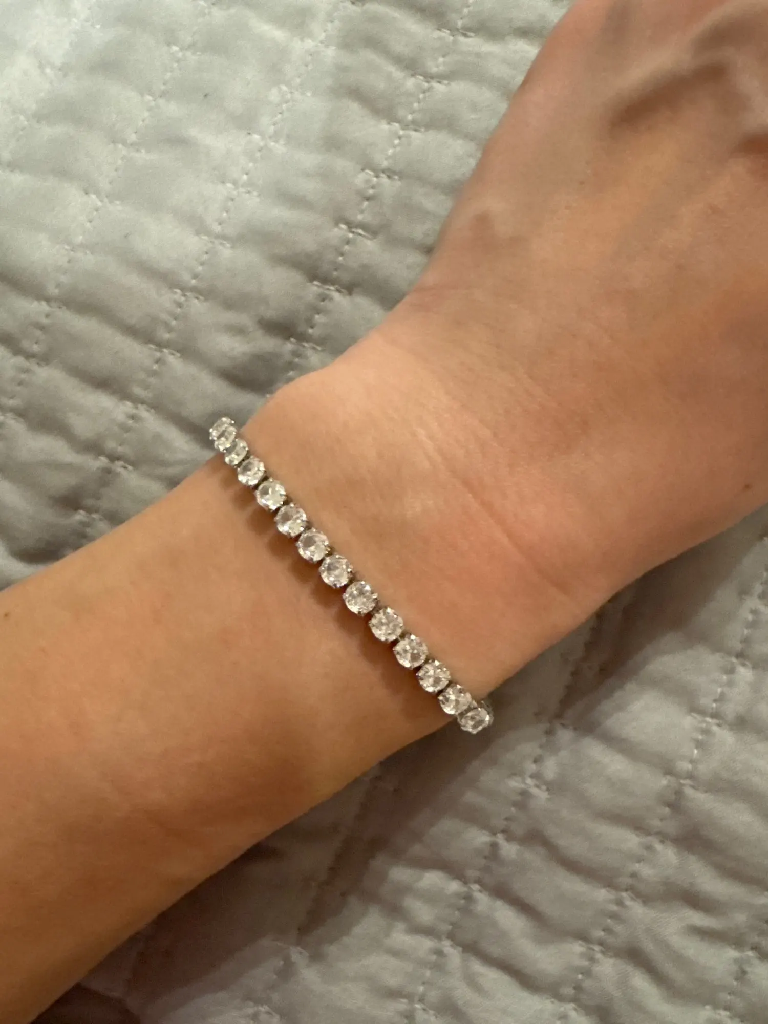 - Continuous line of faceted 4 mm CZ stones for maximum sparkle