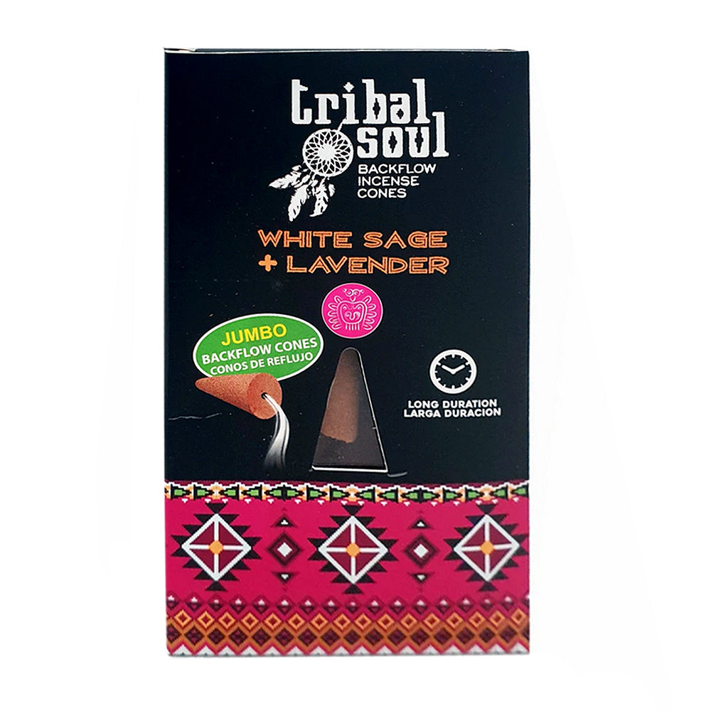 Breathe in calm. These Tribal Soul jumbo backflow cones blend sacred White Sage with soothing Lavender to cleanse, relax, and restore emotional balance. Designed for backflow burners, they create a mesmerizing smoke waterfall and a peaceful, heart-opening atmosphere.