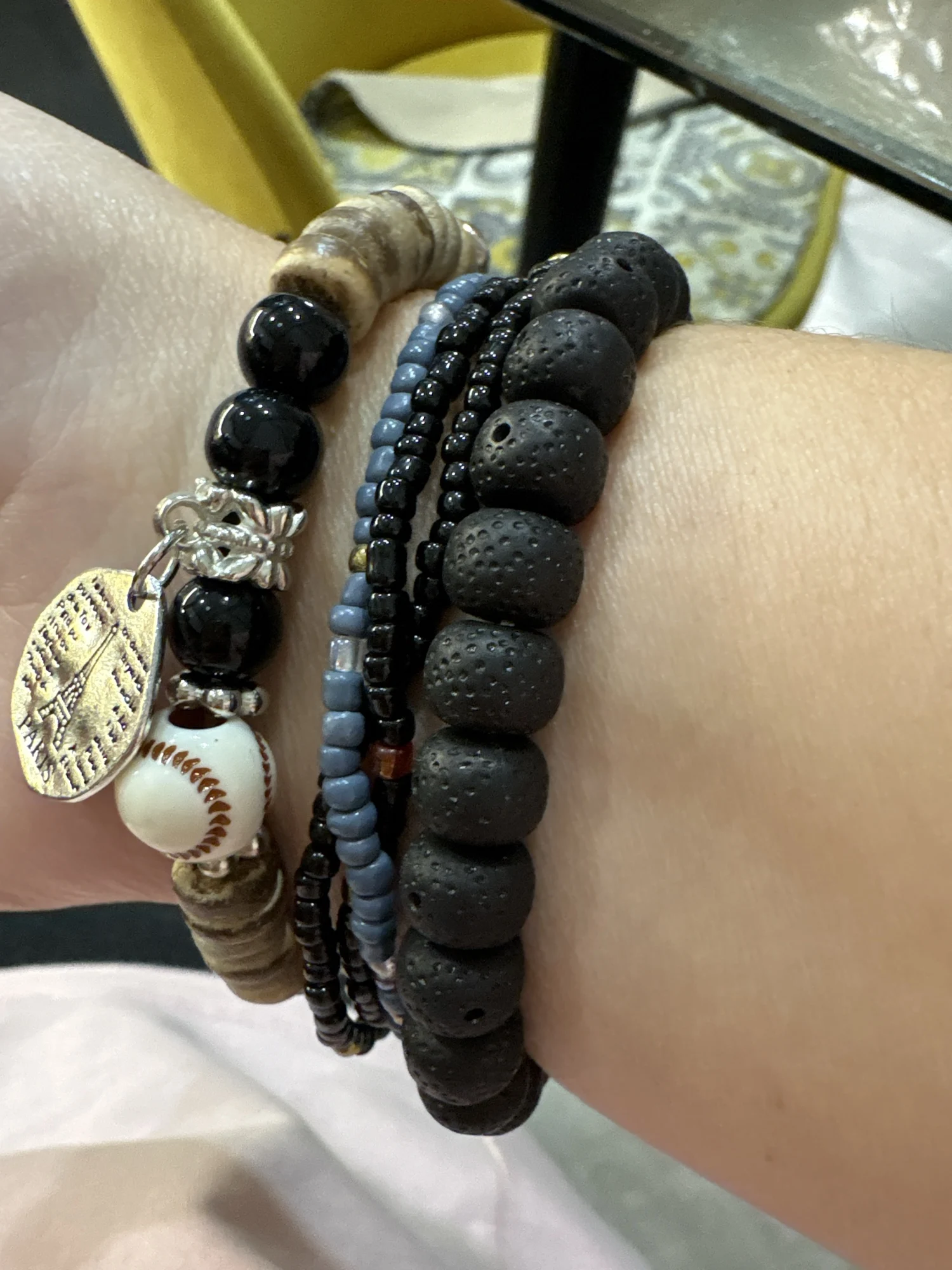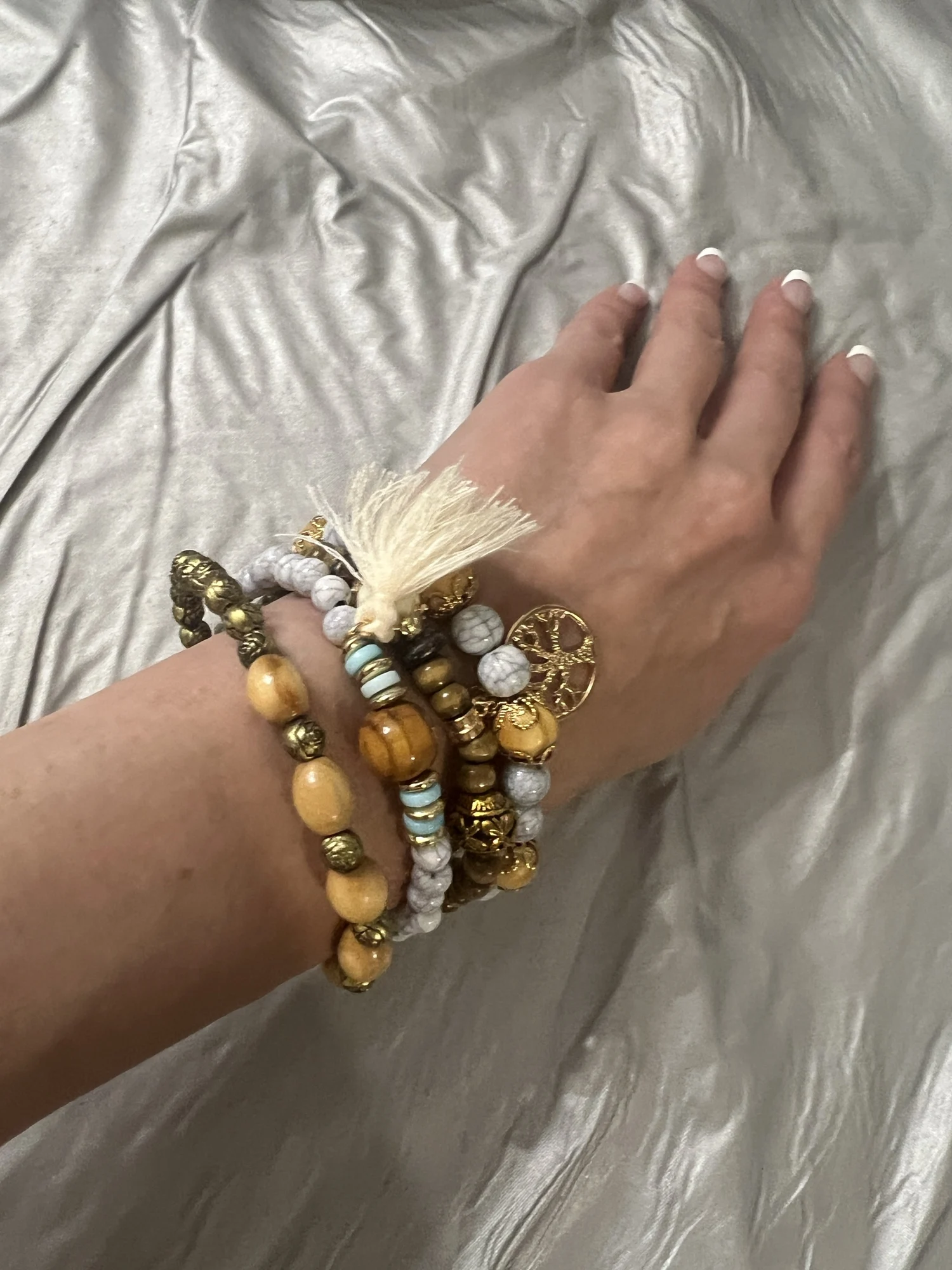 - Wear all four bracelets together for a bold bohemian look