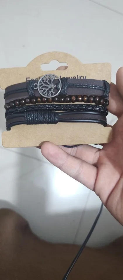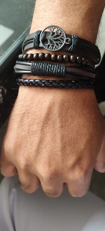 Stack, mix, and match your vibe. This 4-piece set combines braided leather cords, natural-look wood beads, and silver-plated zinc-alloy charms—featuring the Tree of Life and a nautical rudder—for an easy, vintage-tribal look you can wear every day.