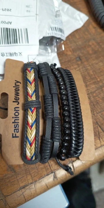 - Materials: Braided leather cords, wood beads, zinc-alloy charms