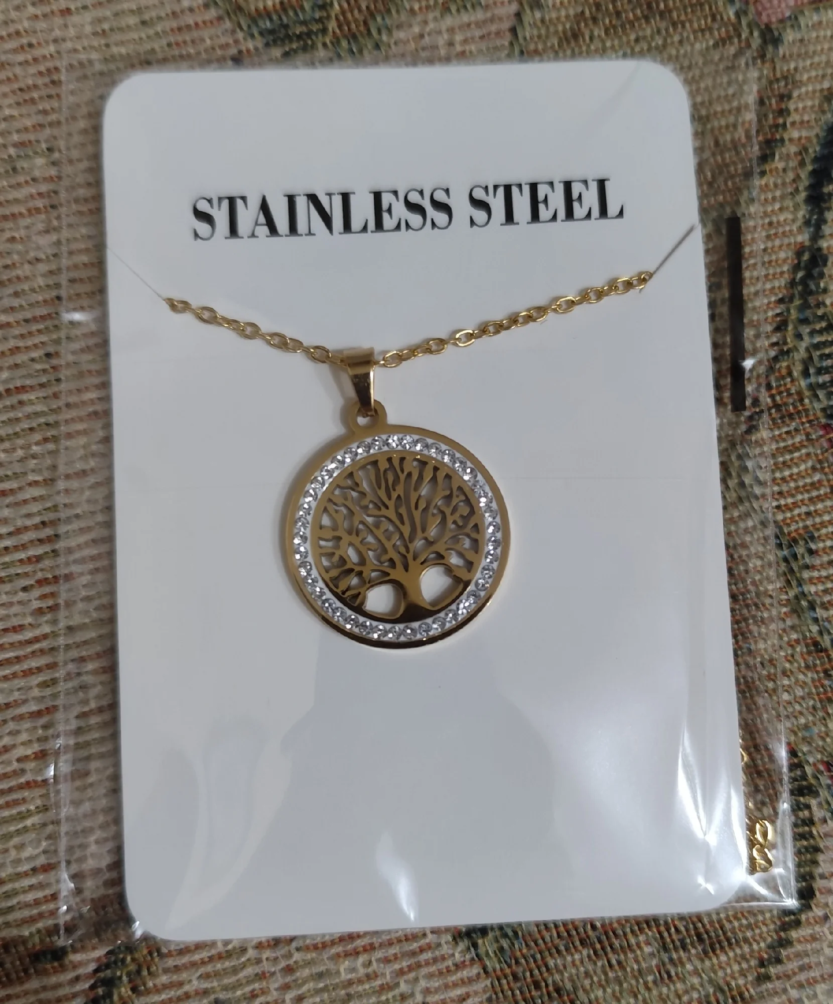 - Pendant Design: Tree of Life (round) with clear zircon