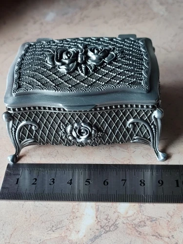 Store your favorite rings, bracelets, and necklaces in vintage charm. This compact zinc-alloy jewelry box features an ornate floral design—perfect for dressers, vanities, or gifting at weddings.