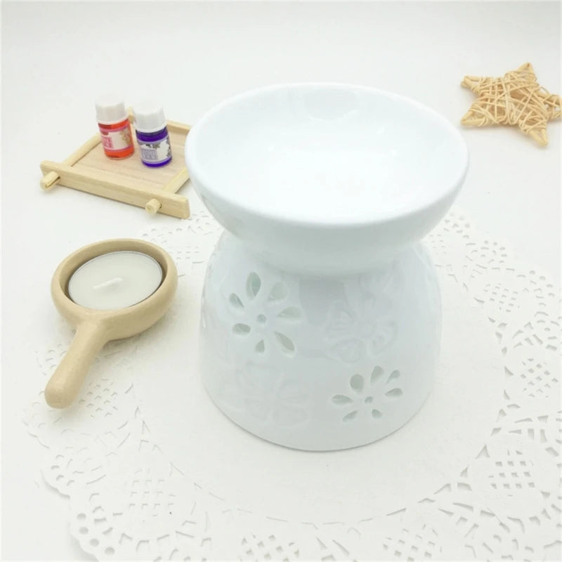 Quemador de aceite de cerámica y lámpara aromática con bandeja
