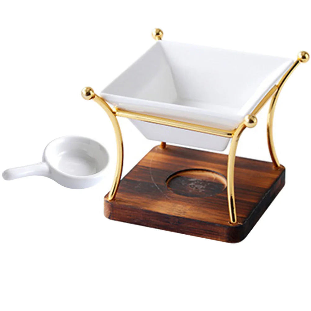 Realza el ambiente de tu hogar con esta lámpara aromática calentadora de cera, de hermosa elaboración, que combina la elegancia de la cerámica, una robusta base de madera y un acabado en hierro. Ideal para ceras derretidas o aceites esenciales, también funciona como un encantador detalle decorativo a la vez que llena tu espacio de una fragancia relajante.
