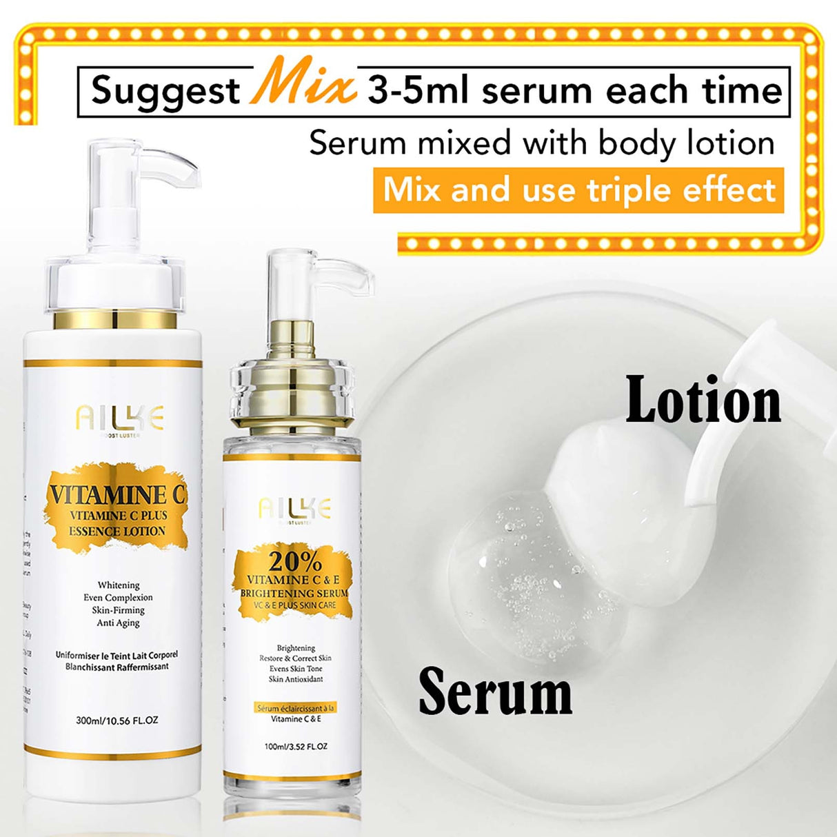 AILKE Loción corporal reafirmante e iluminadora con vitamina C para el cuidado de la piel, antiedad y tratamiento antiarrugas.