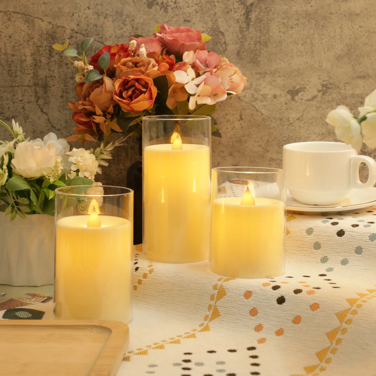 - El juego incluye: 5 velas de pilar LED sin llama