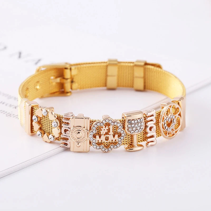 - Combínalo con otras pulseras de dijes para lograr un look apilado.