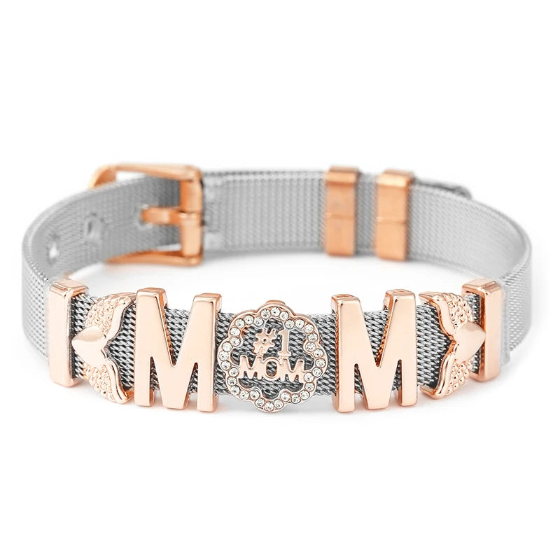 Celebra el amor, el estilo y los sentimientos con esta elegante pulsera de cristal con dije de cámara hueca "Mamá". Fabricada en acero inoxidable resistente, esta pulsera de malla ajustable presenta una combinación única de cuentas, lo que la convierte en el accesorio perfecto para aniversarios, bodas, fiestas o como un regalo especial para alguien especial.