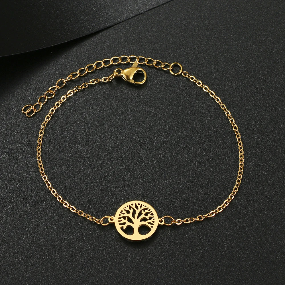Pulsera de acero inoxidable con dije de árbol de la fortuna - Color dorado está agotado y se enviará tan pronto como vuelva a estar disponible.