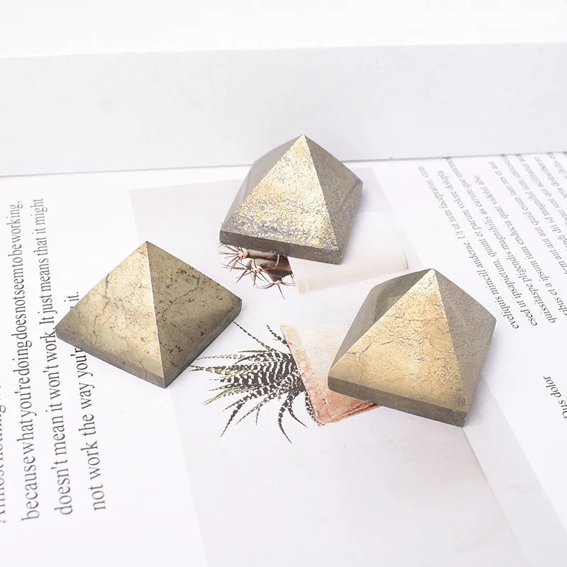 Eleva tu espacio y energía con esta pirámide de cristal de pirita natural pulida. Conocida como el "oro de los tontos", la pirita irradia energía protectora y estabilizadora, además de ser una magnífica pieza decorativa para tu hogar, oficina o espacio sagrado. Ideal para la sanación de chakras, el Reiki y las prácticas de Feng Shui.