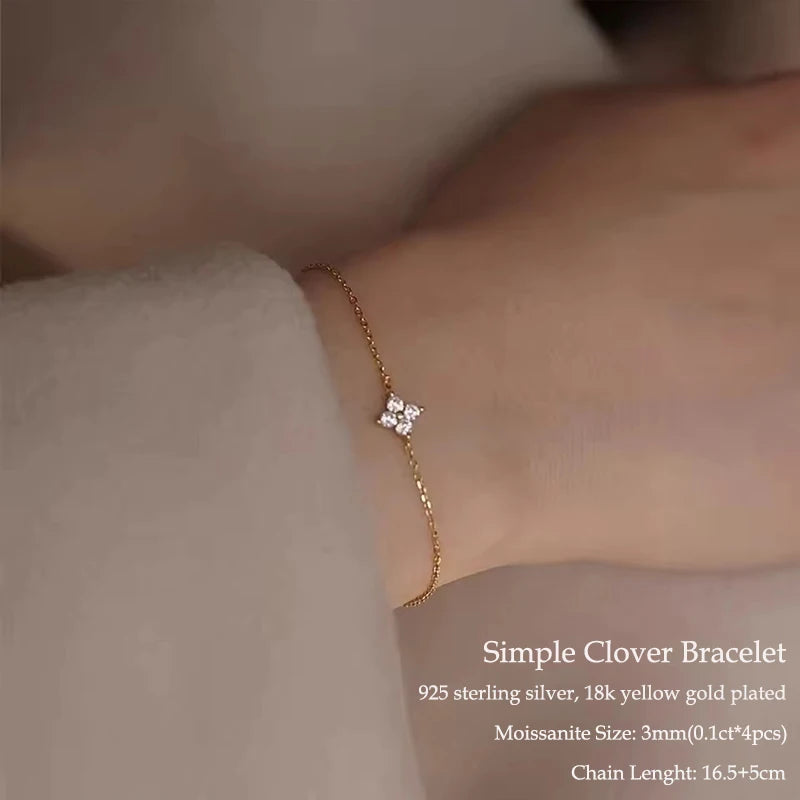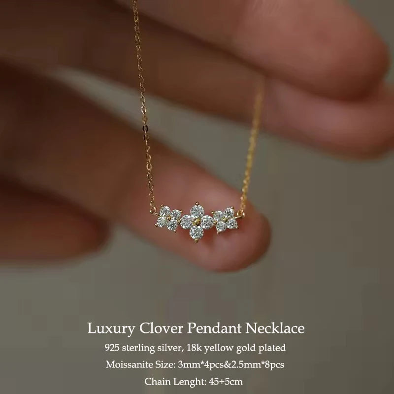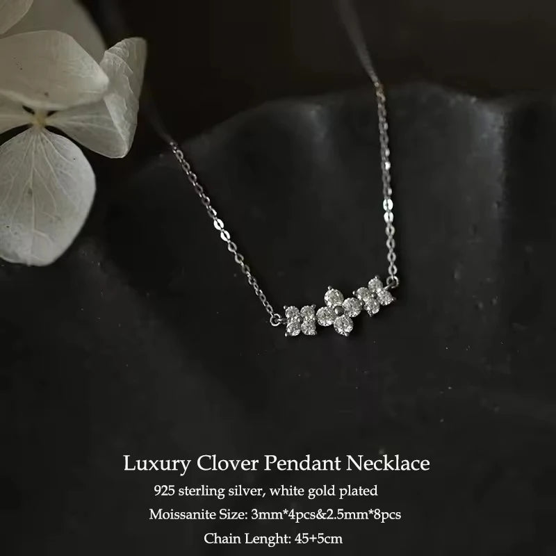 • Model: Fashion Clover Moissanite Pendant Necklace Earrings Bracelet for Women
