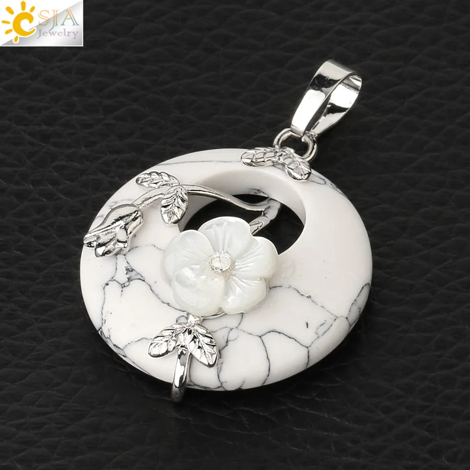 Natural Stone Flower Donut Pendant