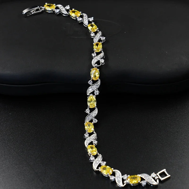 Acapara todas las miradas en cualquier cena con esta impresionante pulsera con dijes de piedras preciosas de cristal. Moderna y atemporal, presenta un refinado diseño geométrico con cristales brillantes que realzan tu elegancia natural. Perfecta como regalo o capricho, esta pulsera añade un toque sofisticado a cualquier look.
