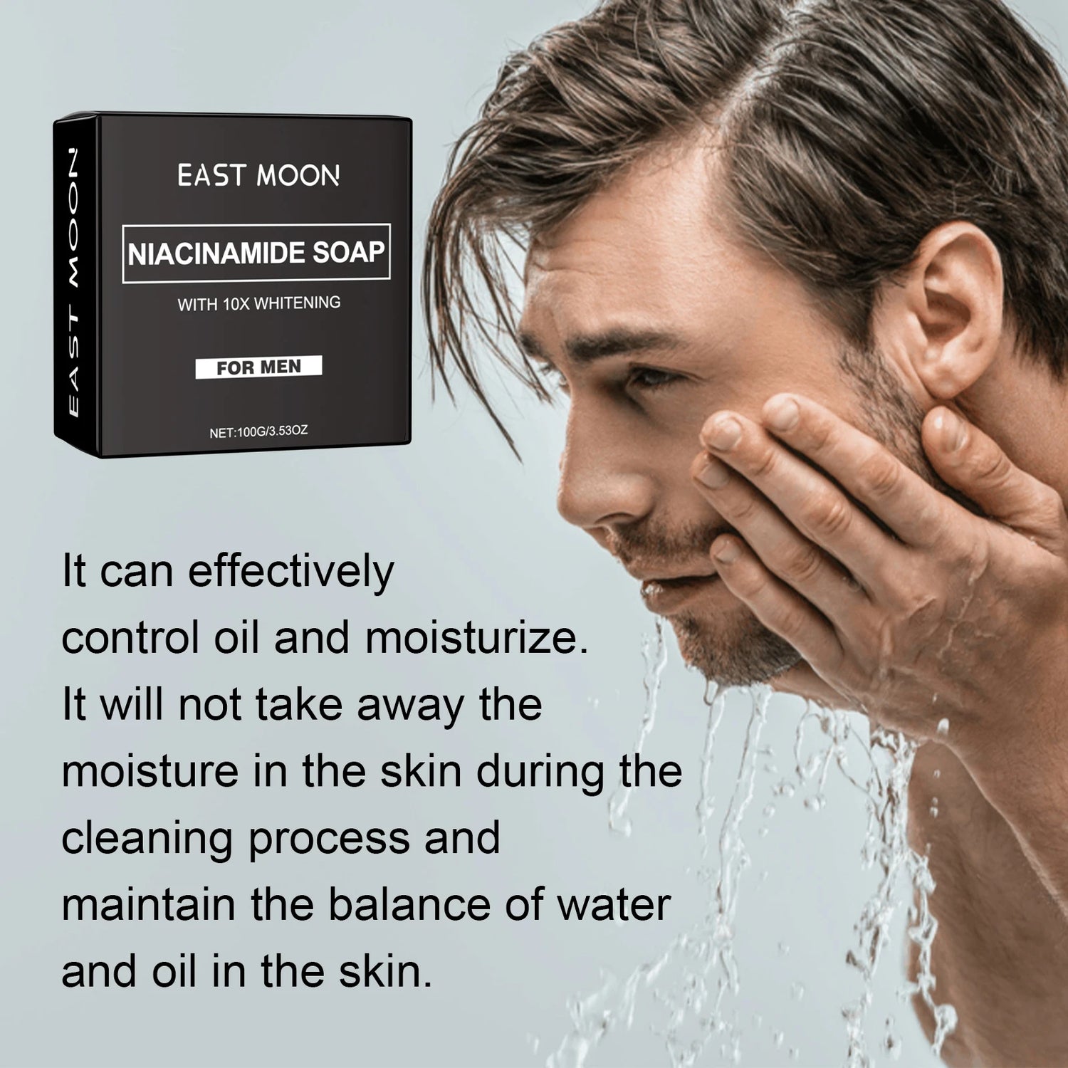 La pastilla de jabón de niacinamida East Moon es la solución ideal para una piel más limpia, suave y luminosa. Con potentes propiedades antiacné e hidratación natural, es el complemento perfecto para la rutina de cuidado personal de cualquier hombre.