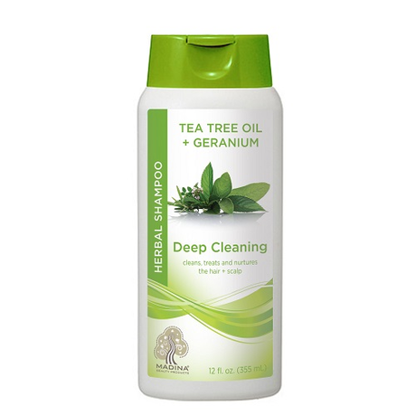 Champú herbal de limpieza profunda con aceite de árbol de té y geranio Madina