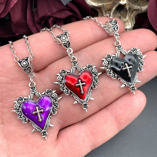 - Bold cross-heart centerpiece for unmistakable gothic flair