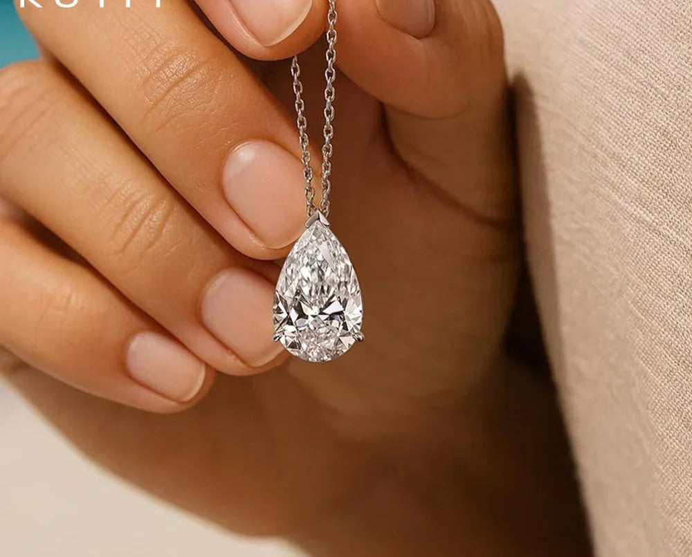 Elevate any outfit with the icy brilliance of D color VVS1 moissanite. This pear-cut 925 silver solitaire is a keepsake-worthy piece you’ll reach for again and again—equally perfect for gifting or treating yourself.