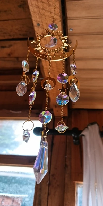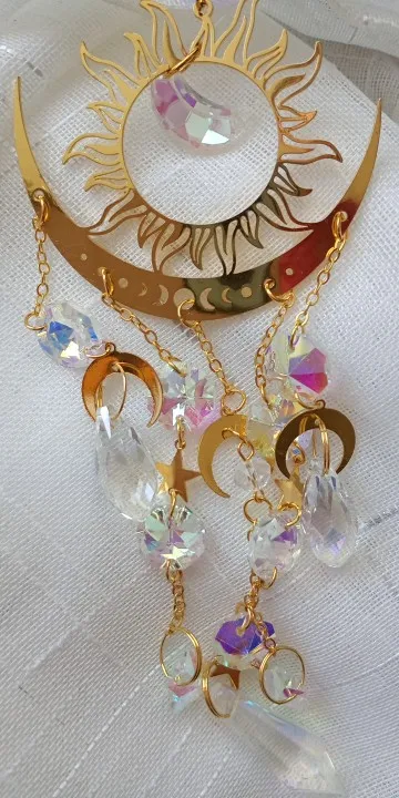 Simple, serene, and a little bit cosmic—this star & moon wind chime pendant turns everyday light and breeze into a soothing mini-ritual. Add it to your space or gift it to someone who loves a touch of starlight.