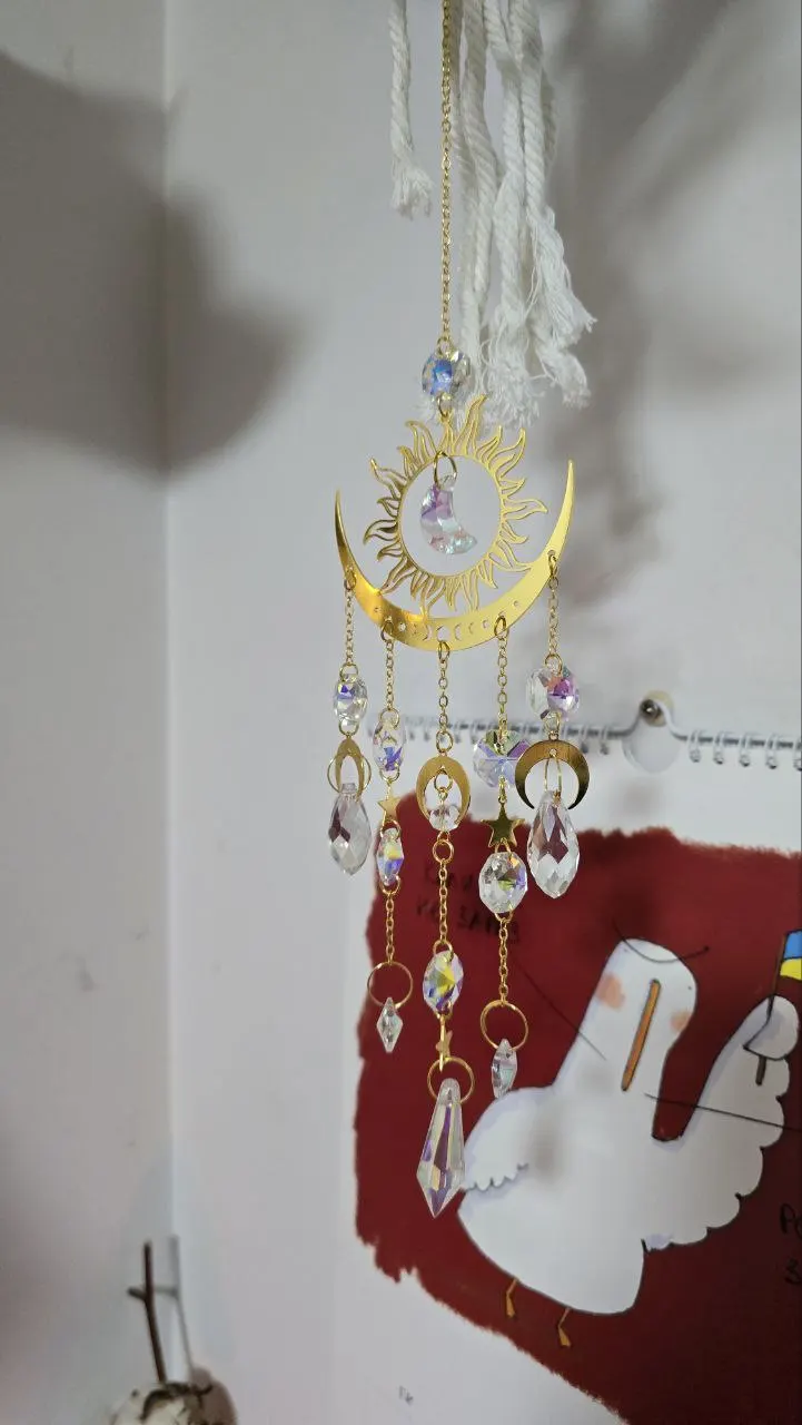 Bring a little night-sky magic to your space. This star-and-moon wind chime catches the light by day and tinkles softly with every breeze—perfect for windows, balconies, patios, or as a dreamy gift.