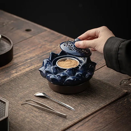 Quemador de cera y aceite para velas de té de cerámica negra