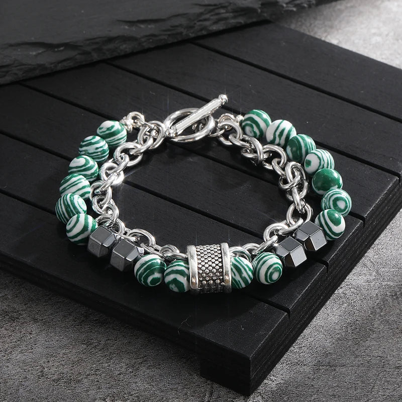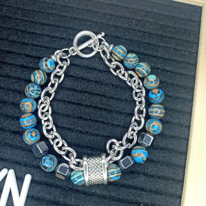 Aprovecha el poder de las piedras naturales de los chakras y la terapia biomagnética con este elegante juego de dos pulseras de cuentas. Diseñadas tanto para el bienestar como para la moda, estas pulseras de acero inoxidable ayudan a equilibrar la energía, apoyan los esfuerzos de adelgazamiento y marcan tendencia con su moderno diseño unisex.