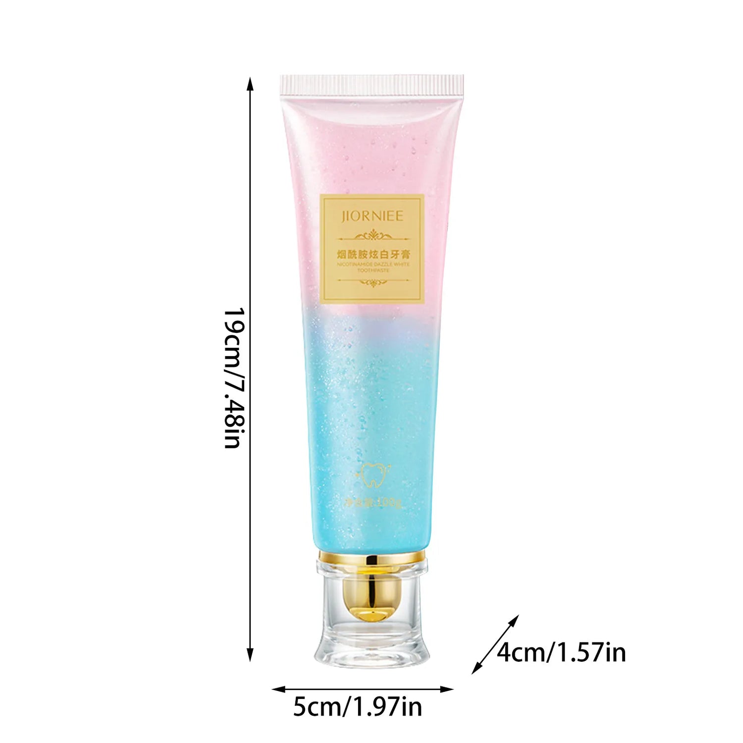 Luce una sonrisa más brillante y segura con la pasta dental blanqueadora de nicotinamida. Su fórmula suave pero potente ayuda a eliminar manchas, refresca el aliento y promueve una salud bucal radiante. Ya sea un día normal o un evento importante, esta pasta dental te garantiza una sonrisa radiante sin esfuerzo.