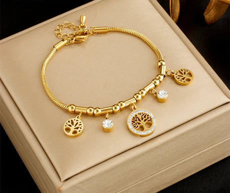 Desde $726 USDPrecio unitario /AgotadoPulsera de acero inoxidable con dije de árbol de la fortuna