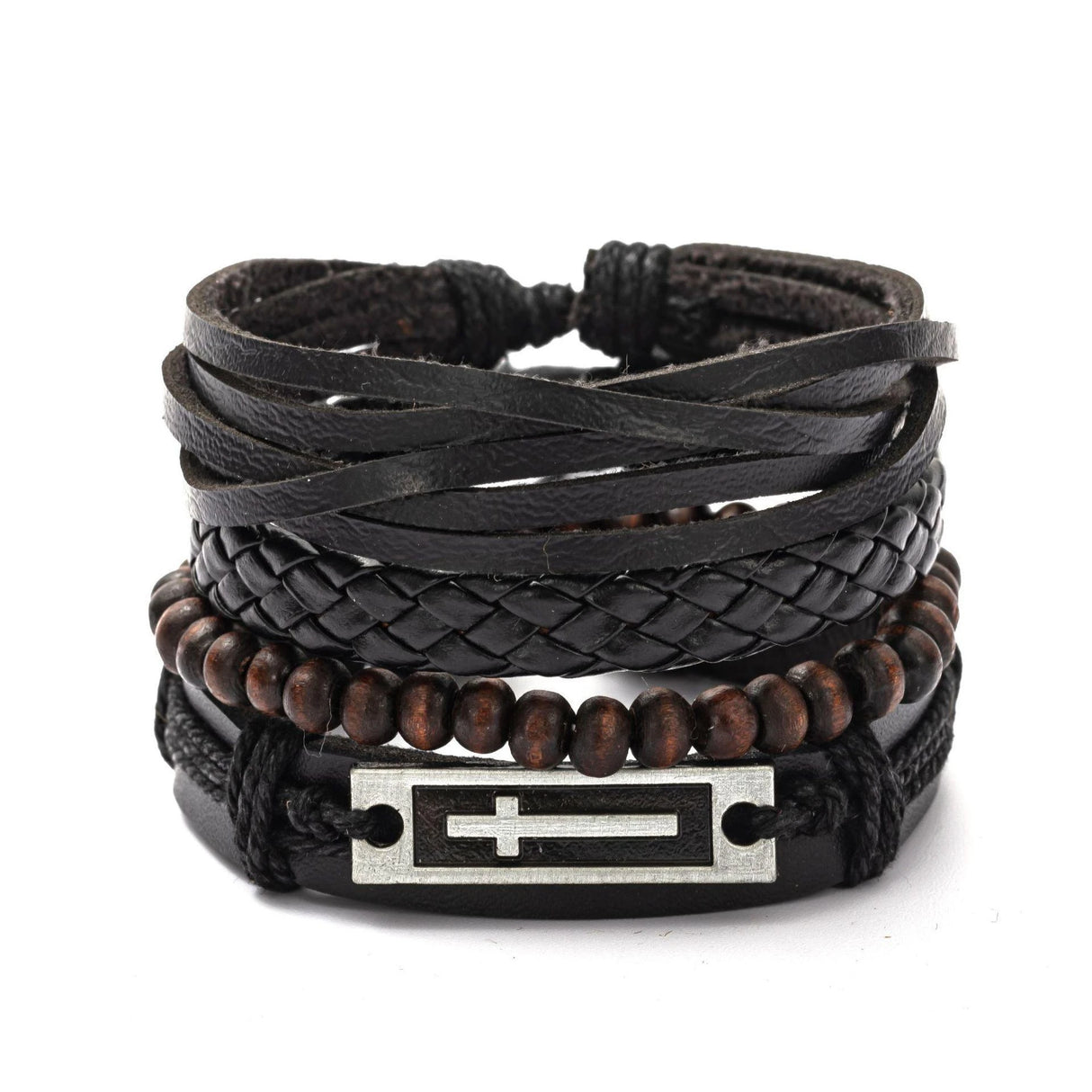 Pulseras de cuero trenzado de 4 piezas para hombre