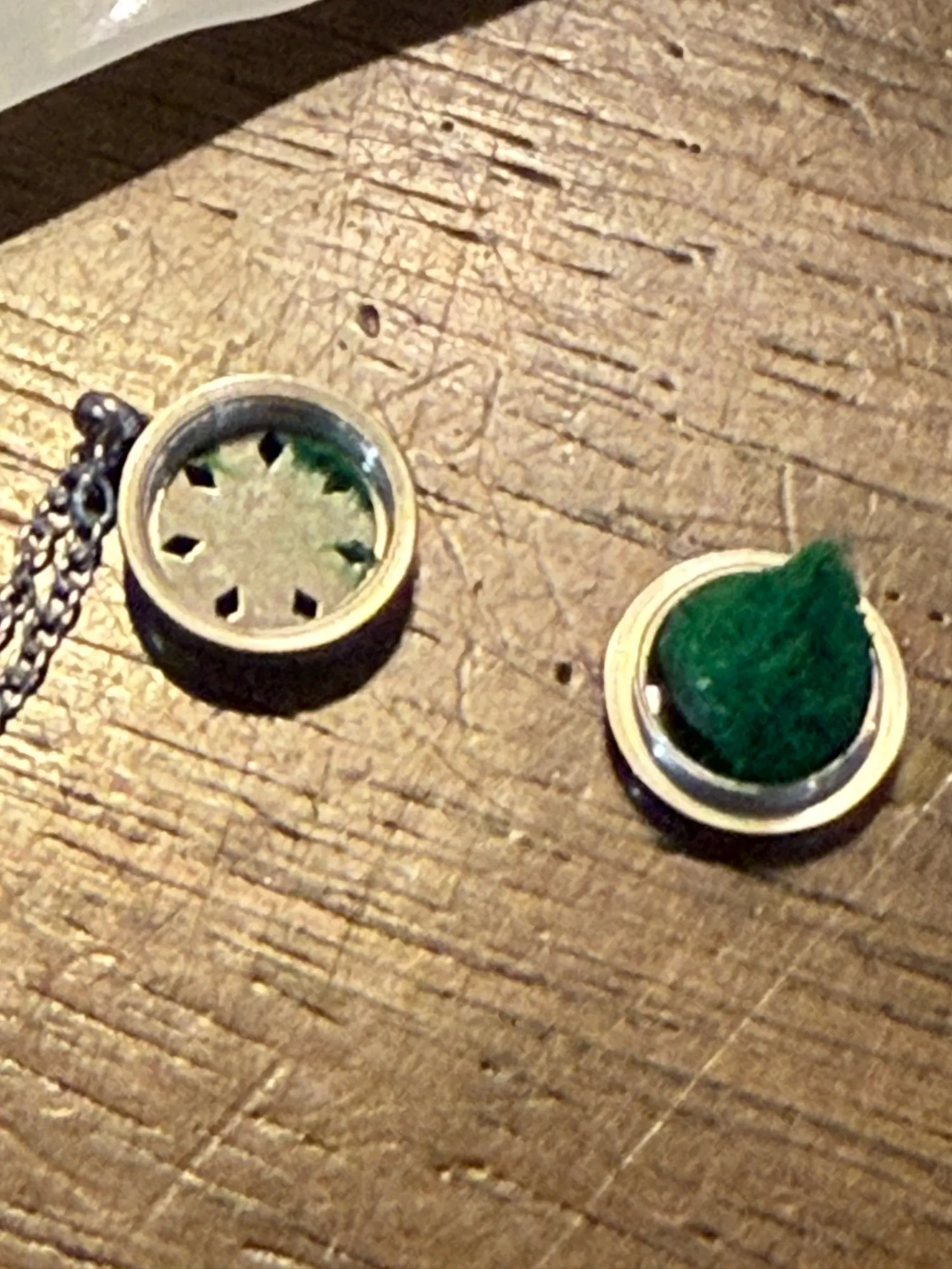 - Open the locket and add 1–3 drops of essential oil to the pad.