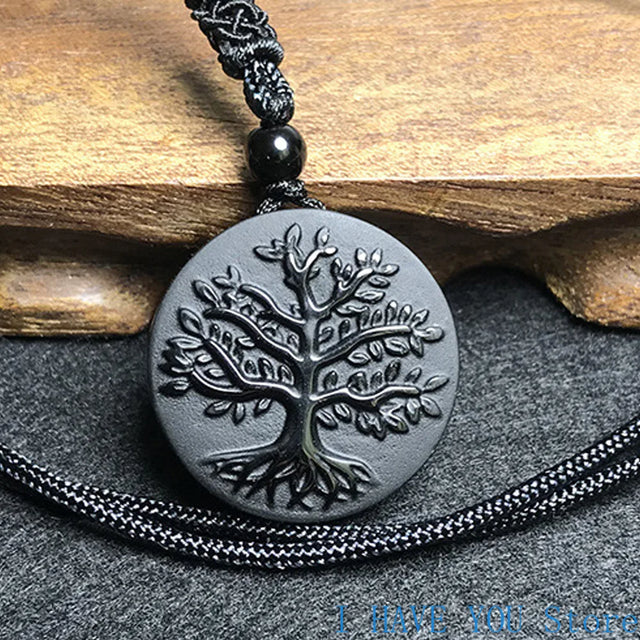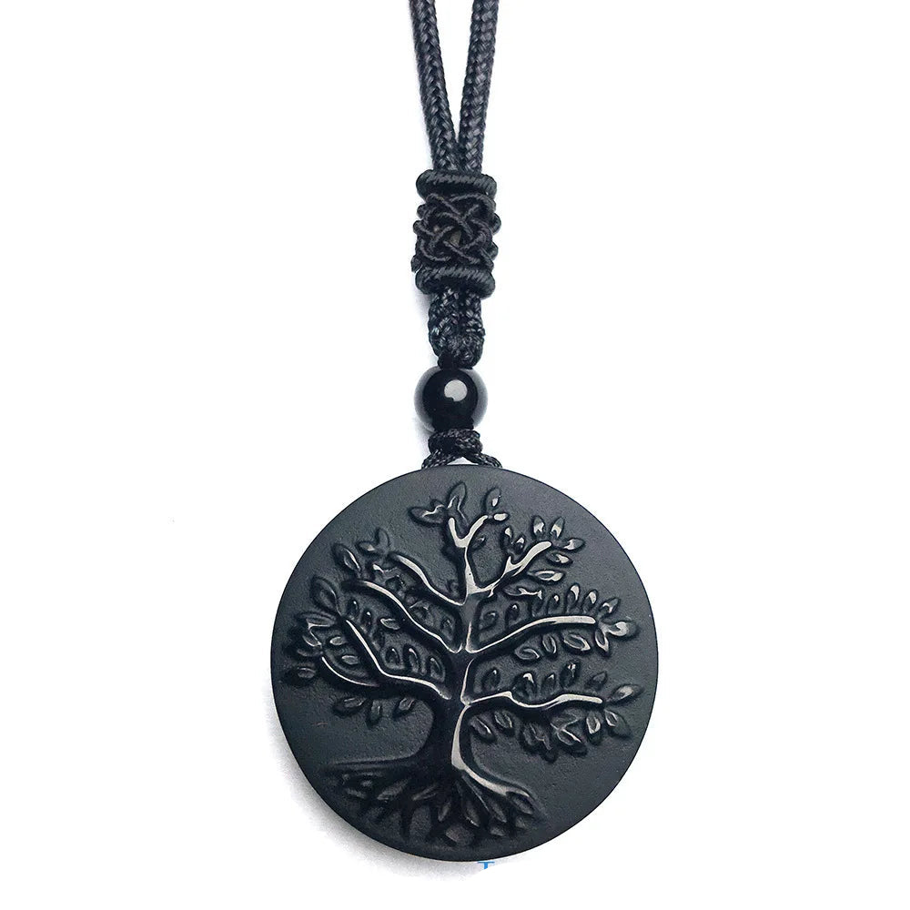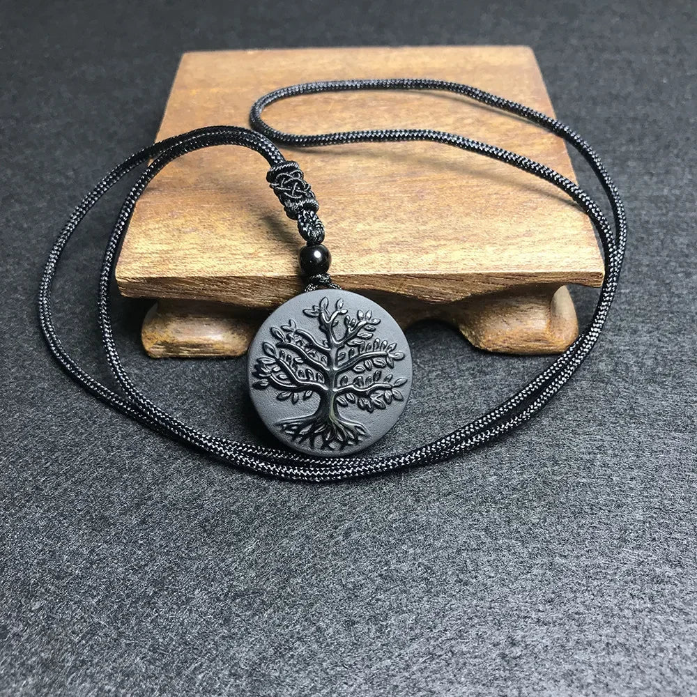 Natural Obsidian Tree of Life Pendant