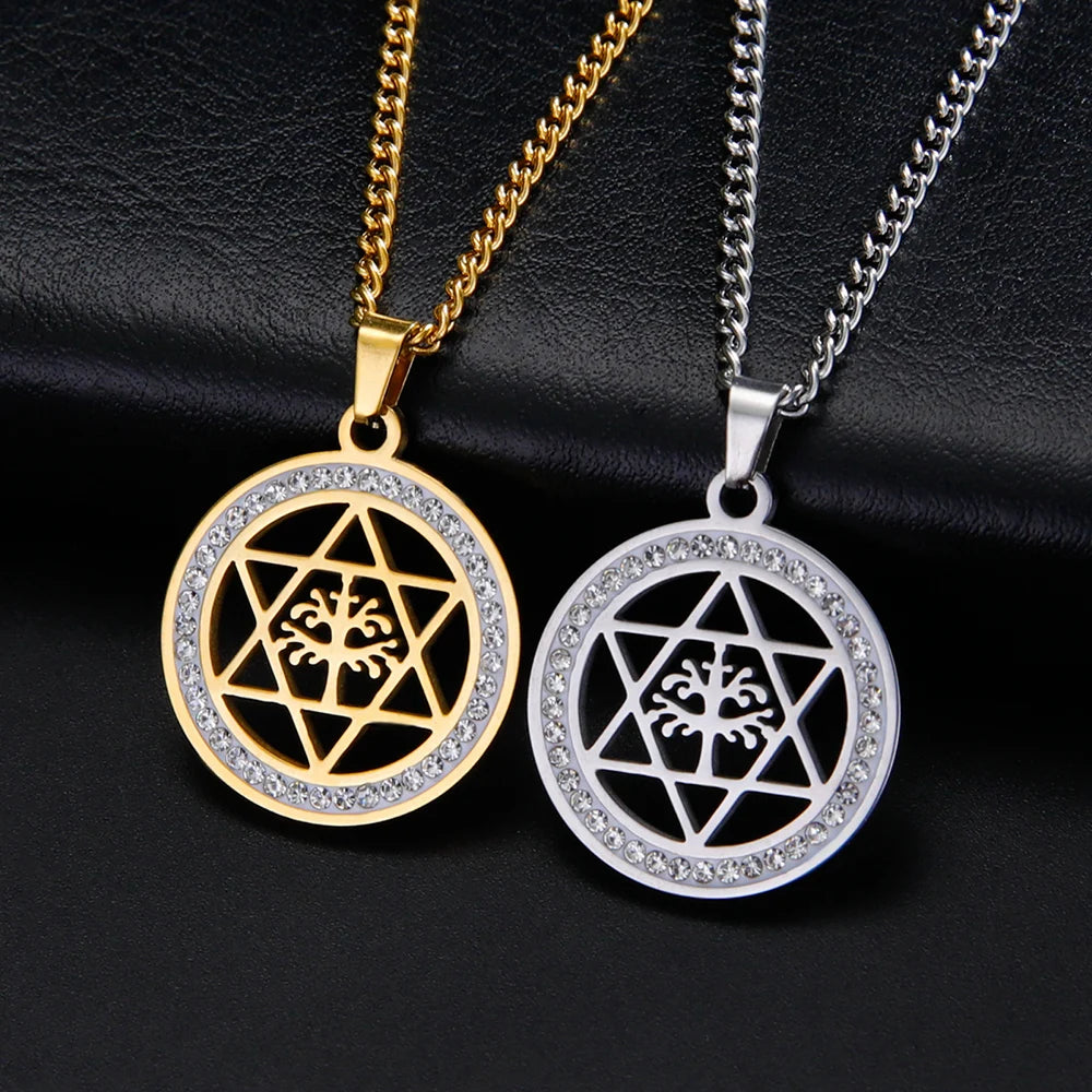 Celebrate faith and style with this Dawapara hexagram pendant, elegantly pairing the Star of David with a Tree of Life motif. Crafted in durable stainless steel with sparkling zircon accents, it’s a timeless, hypoallergenic piece for daily wear or special occasions.