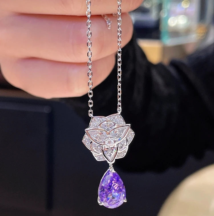 Elevate your look with this exquisite lavender-purple water-drop pendant, crafted in genuine 925 sterling silver. A luminous pearl takes center stage, accented with sparkling diamond-style details for a chic, fashion-forward finish—perfect for everyday elegance or special occasions.