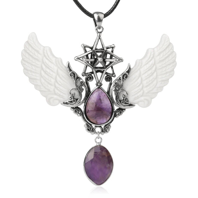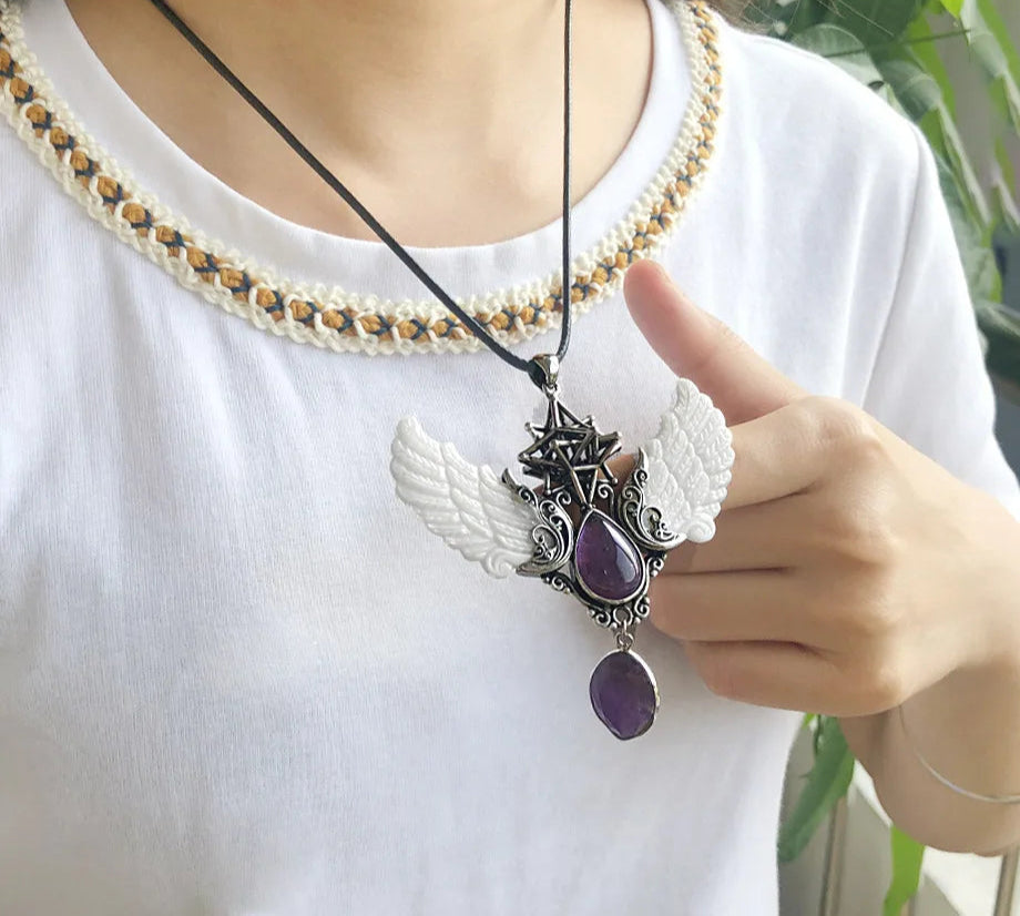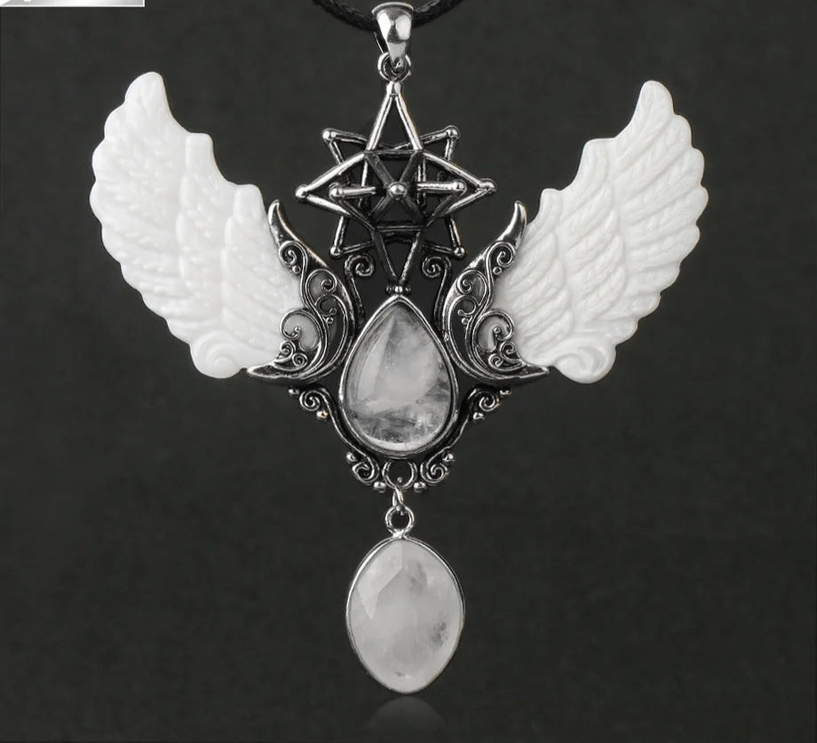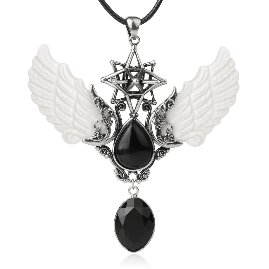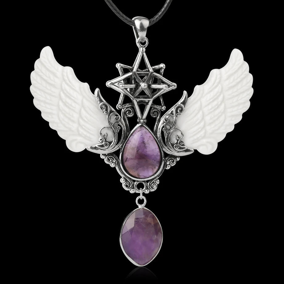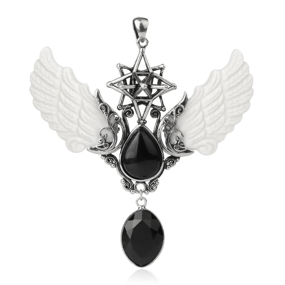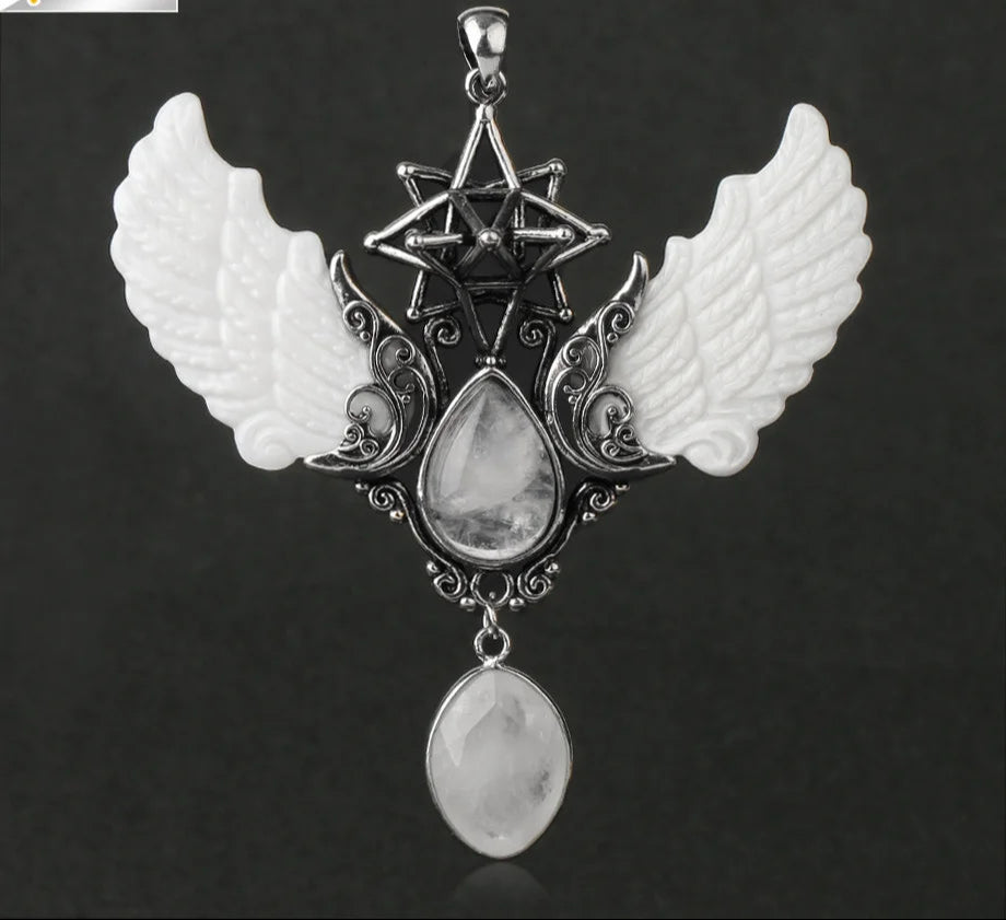 - Pendant Features: Angel wings, water-drop point, Merkaba star, oversized design