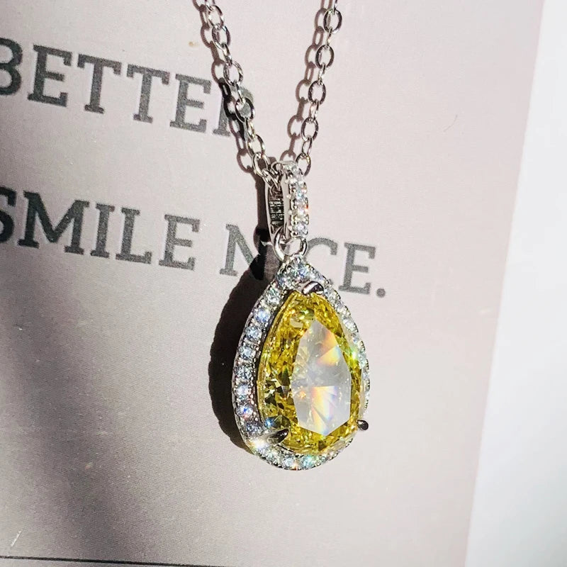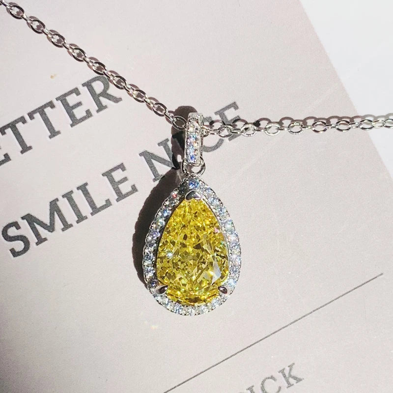 Timeless, luminous, and made to be noticed—this pear-shaped yellow zirconia pendant is your go-to wedding or engagement accessory, adding warm golden glow and refined charm to any outfit.