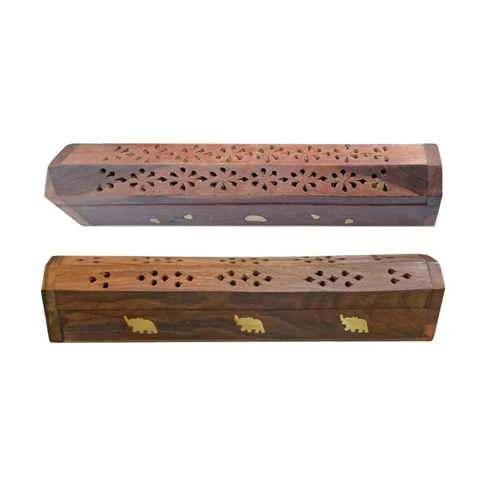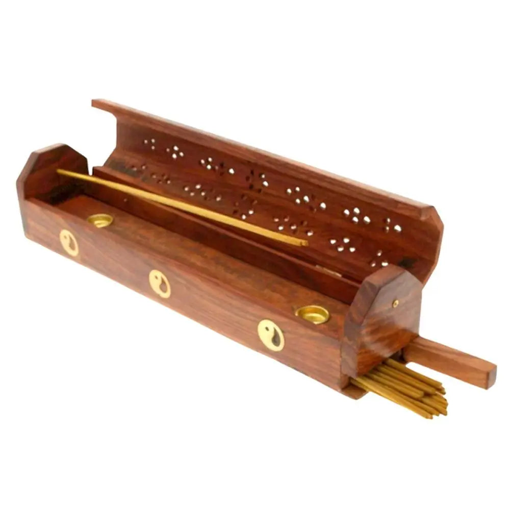 Lleve paz y elegancia a su espacio con el Quemador de Incienso Chino de Madera. Hecho a mano con madera de primera calidad y adornado con incrustaciones de latón, este tradicional y funcional portaincienso permite quemar varillas o conos de forma segura, manteniendo las cenizas contenidas. Su compartimento oculto aporta comodidad, haciéndolo perfecto para la meditación, la relajación o como un regalo único.