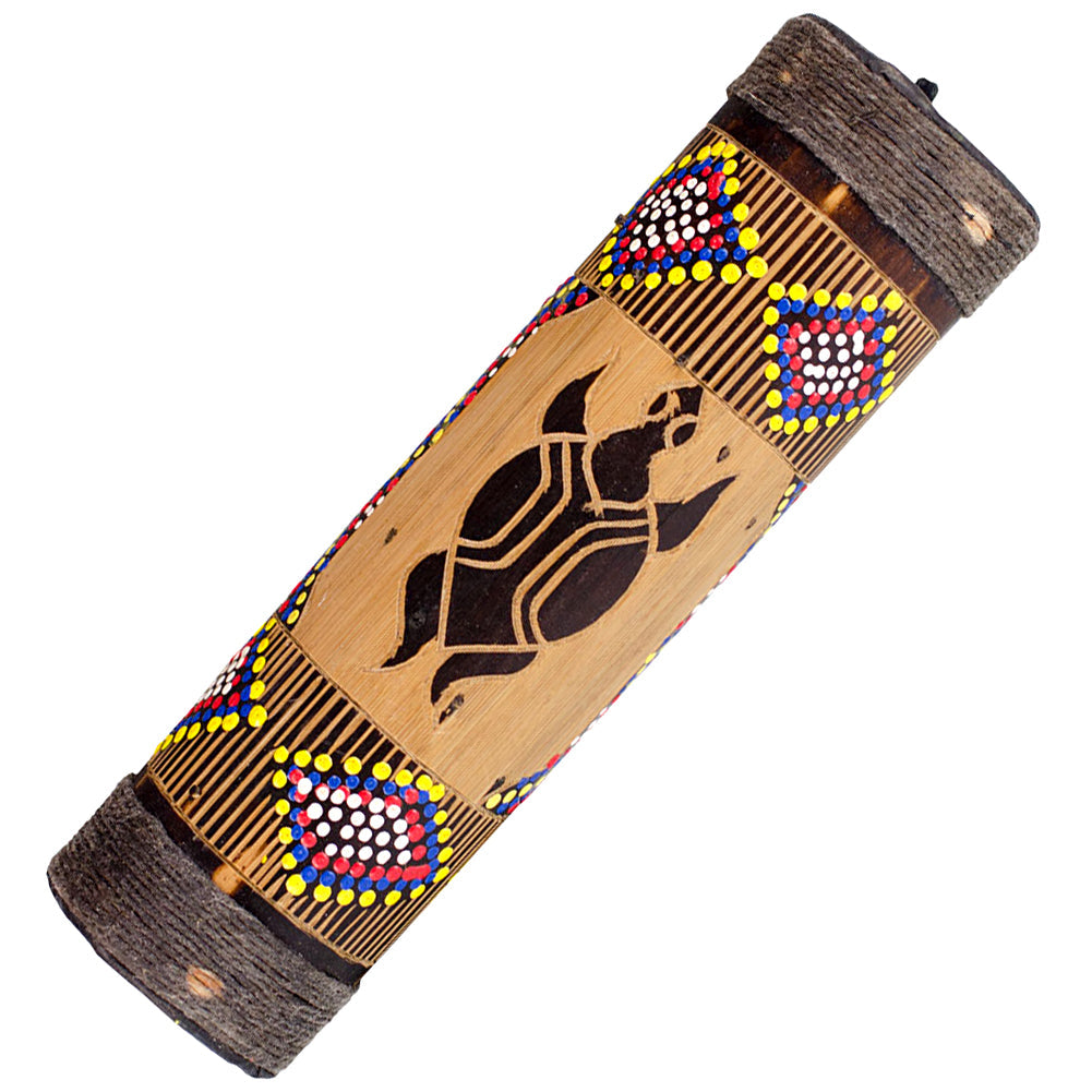 Bring calming rain sounds and ancient symbolism to your space with this handcrafted Small Carved Rainstick featuring a turtle motif. Made from eco-friendly bamboo or rattan and finished with vibrant hand-painted dot art, this piece is as beautiful as it is soothing. Tilt it gently to release the soft, rain-like sound—perfect for meditation, ritual work, ceremonies, sound healing, or simply adding a spiritual accent to your home.