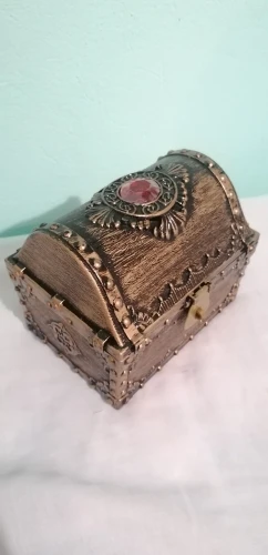 - Classic treasure chest detailing (ribs, latch, vintage vibe)
