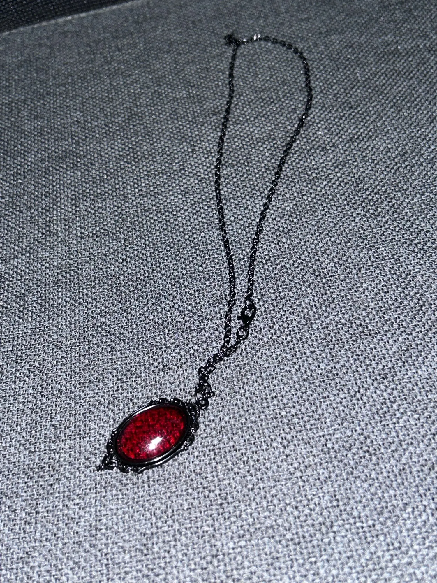 Channel vintage goth elegance with this red-and-black quartz crystal cameo pendant. Set in durable zinc alloy on an O-chain, it’s a striking gift for Christmas, parties, or everyday alt style.