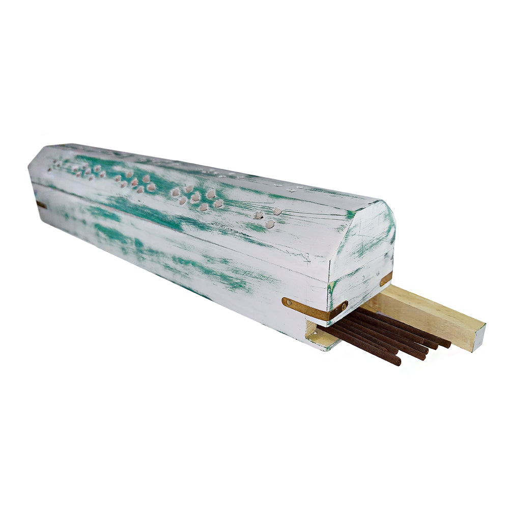 White Wash Wood Incense Box Burner (Green)